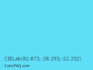 CIELab 82.873,-28.293,-22.252 Color is a light cyan color and the nearest color is Turquoise Blue #6cdae7. Hex code #5fdff7 and RGB value is rgb(95,223,247). In RGB color space, this color is composed of 37% red, 87% green, 97% blue, In CMYK color space, this color is composed of 62% cyan, 10% magenta, 0% yellow , 3% black , In HSL color space, this color has a hue angle of 189° , 90% saturation and 67% lightness.