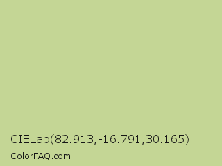CIELab 82.913,-16.791,30.165 Color is a light lime color and the nearest color is Pine Glade #c7cd90. Hex code #c4d695 and RGB value is rgb(196,214,149). In RGB color space, this color is composed of 77% red, 84% green, 58% blue, In CMYK color space, this color is composed of 8% cyan, 0% magenta, 30% yellow , 16% black , In HSL color space, this color has a hue angle of 77° , 44% saturation and 71% lightness.