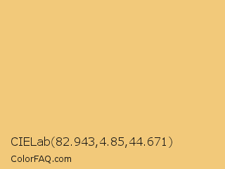 CIELab 82.943,4.85,44.671 Color is a light orange color and the nearest color is Rob Roy #eac674. Hex code #f2c97a and RGB value is rgb(242,201,122). In RGB color space, this color is composed of 95% red, 79% green, 48% blue, In CMYK color space, this color is composed of 0% cyan, 17% magenta, 50% yellow , 5% black , In HSL color space, this color has a hue angle of 40° , 82% saturation and 71% lightness.