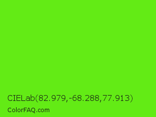 CIELab 82.979,-68.288,77.913 Color is a normal green color and the nearest color is Bright Green #66ff00. Hex code #63eb15 and RGB value is rgb(99,235,21). In RGB color space, this color is composed of 39% red, 92% green, 8% blue, In CMYK color space, this color is composed of 58% cyan, 0% magenta, 91% yellow , 8% black , In HSL color space, this color has a hue angle of 98° , 84% saturation and 50% lightness.