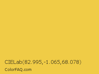 CIELab 82.995,-1.065,68.078 Color is a light yellow color and the nearest color is Ronchi #ecc54e. Hex code #f0cc46 and RGB value is rgb(240,204,70). In RGB color space, this color is composed of 94% red, 80% green, 27% blue, In CMYK color space, this color is composed of 0% cyan, 15% magenta, 71% yellow , 6% black , In HSL color space, this color has a hue angle of 47° , 85% saturation and 61% lightness.