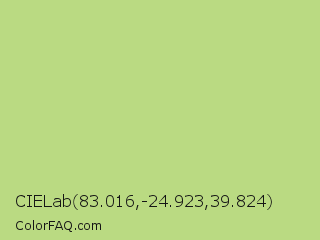 CIELab 83.016,-24.923,39.824 Color is a light green color and the nearest color is Yellow Green #c5e17a. Hex code #bada82 and RGB value is rgb(186,218,130). In RGB color space, this color is composed of 73% red, 85% green, 51% blue, In CMYK color space, this color is composed of 15% cyan, 0% magenta, 40% yellow , 15% black , In HSL color space, this color has a hue angle of 82° , 54% saturation and 68% lightness.