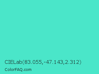 CIELab 83.055,-47.143,2.312 Color is a normal cyan color and the nearest color is Turquoise #40e0d0. Hex code #4ae6c9 and RGB value is rgb(74,230,201). In RGB color space, this color is composed of 29% red, 90% green, 79% blue, In CMYK color space, this color is composed of 68% cyan, 0% magenta, 13% yellow , 10% black , In HSL color space, this color has a hue angle of 169° , 76% saturation and 60% lightness.