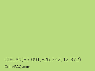 CIELab 83.091,-26.742,42.372 Color is a light green color and the nearest color is Yellow Green #c5e17a. Hex code #b8db7d and RGB value is rgb(184,219,125). In RGB color space, this color is composed of 72% red, 86% green, 49% blue, In CMYK color space, this color is composed of 16% cyan, 0% magenta, 43% yellow , 14% black , In HSL color space, this color has a hue angle of 82° , 57% saturation and 67% lightness.