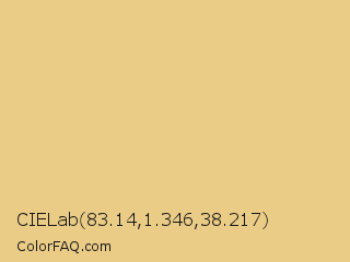 CIELab 83.14,1.346,38.217 Color is a light orange color and the nearest color is Putty #e7cd8c. Hex code #eacc87 and RGB value is rgb(234,204,135). In RGB color space, this color is composed of 92% red, 80% green, 53% blue, In CMYK color space, this color is composed of 0% cyan, 13% magenta, 42% yellow , 8% black , In HSL color space, this color has a hue angle of 42° , 70% saturation and 72% lightness.