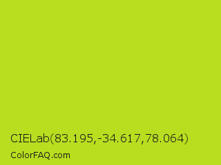 CIELab 83.195,-34.617,78.064 Color is a normal lime color and the nearest color is Inch Worm #b0e313. Hex code #b8de1f and RGB value is rgb(184,222,31). In RGB color space, this color is composed of 72% red, 87% green, 12% blue, In CMYK color space, this color is composed of 17% cyan, 0% magenta, 86% yellow , 13% black , In HSL color space, this color has a hue angle of 72° , 75% saturation and 50% lightness.