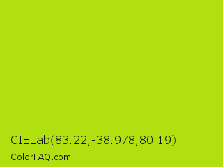 CIELab 83.22,-38.978,80.19 Color is a normal lime color and the nearest color is Inch Worm #b0e313. Hex code #b0e010 and RGB value is rgb(176,224,16). In RGB color space, this color is composed of 69% red, 88% green, 6% blue, In CMYK color space, this color is composed of 21% cyan, 0% magenta, 93% yellow , 12% black , In HSL color space, this color has a hue angle of 74° , 87% saturation and 47% lightness.