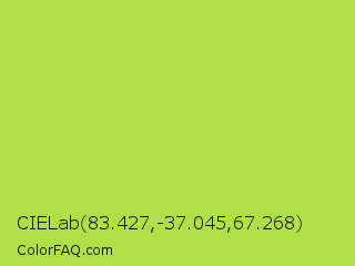 CIELab 83.427,-37.045,67.268 Color is a normal lime color and the nearest color is Conifer #acdd4d. Hex code #b0e045 and RGB value is rgb(176,224,69). In RGB color space, this color is composed of 69% red, 88% green, 27% blue, In CMYK color space, this color is composed of 21% cyan, 0% magenta, 69% yellow , 12% black , In HSL color space, this color has a hue angle of 79° , 71% saturation and 57% lightness.