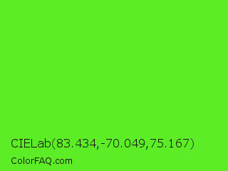 CIELab 83.434,-70.049,75.167 Color is a normal green color and the nearest color is Harlequin Green #46cb18. Hex code #5ced26 and RGB value is rgb(92,237,38). In RGB color space, this color is composed of 36% red, 93% green, 15% blue, In CMYK color space, this color is composed of 61% cyan, 0% magenta, 84% yellow , 7% black , In HSL color space, this color has a hue angle of 104° , 85% saturation and 54% lightness.