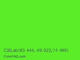 CIELab 83.444,-69.923,74.489 Color is a normal green color and the nearest color is Harlequin Green #46cb18. Hex code #5ced29 and RGB value is rgb(92,237,41). In RGB color space, this color is composed of 36% red, 93% green, 16% blue, In CMYK color space, this color is composed of 61% cyan, 0% magenta, 83% yellow , 7% black , In HSL color space, this color has a hue angle of 104° , 84% saturation and 55% lightness.