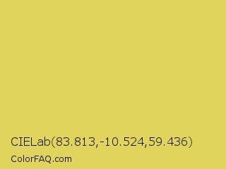 CIELab 83.813,-10.524,59.436 Color is a light yellow color and the nearest color is Confetti #e9d75a. Hex code #e0d45c and RGB value is rgb(224,212,92). In RGB color space, this color is composed of 88% red, 83% green, 36% blue, In CMYK color space, this color is composed of 0% cyan, 5% magenta, 59% yellow , 12% black , In HSL color space, this color has a hue angle of 55° , 68% saturation and 62% lightness.
