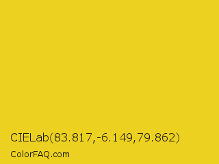 CIELab 83.817,-6.149,79.862 Color is a normal yellow color and the nearest color is Sunflower #e4d422. Hex code #edd121 and RGB value is rgb(237,209,33). In RGB color space, this color is composed of 93% red, 82% green, 13% blue, In CMYK color space, this color is composed of 0% cyan, 12% magenta, 86% yellow , 7% black , In HSL color space, this color has a hue angle of 52° , 85% saturation and 53% lightness.
