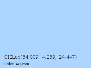CIELab 84.009,-4.289,-24.447 Color is a very light blue color and the nearest color is Sail #b8e0f9. Hex code #acd6ff and RGB value is rgb(172,214,255). In RGB color space, this color is composed of 67% red, 84% green, 100% blue, In CMYK color space, this color is composed of 33% cyan, 16% magenta, 0% yellow , 0% black , In HSL color space, this color has a hue angle of 210° , 100% saturation and 84% lightness.