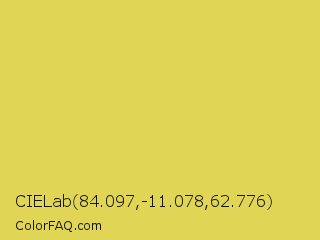 CIELab 84.097,-11.078,62.776 Color is a light yellow color and the nearest color is Confetti #e9d75a. Hex code #e1d555 and RGB value is rgb(225,213,85). In RGB color space, this color is composed of 88% red, 84% green, 33% blue, In CMYK color space, this color is composed of 0% cyan, 5% magenta, 62% yellow , 12% black , In HSL color space, this color has a hue angle of 55° , 70% saturation and 61% lightness.