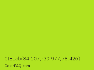 CIELab 84.107,-39.977,78.426 Color is a normal lime color and the nearest color is Inch Worm #b0e313. Hex code #b0e320 and RGB value is rgb(176,227,32). In RGB color space, this color is composed of 69% red, 89% green, 13% blue, In CMYK color space, this color is composed of 22% cyan, 0% magenta, 86% yellow , 11% black , In HSL color space, this color has a hue angle of 76° , 78% saturation and 51% lightness.