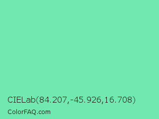 CIELab 84.207,-45.926,16.708 Color is a light green color and the nearest color is Medium Aquamarine #66ddaa. Hex code #72e8b1 and RGB value is rgb(114,232,177). In RGB color space, this color is composed of 45% red, 91% green, 69% blue, In CMYK color space, this color is composed of 51% cyan, 0% magenta, 24% yellow , 9% black , In HSL color space, this color has a hue angle of 152° , 72% saturation and 68% lightness.