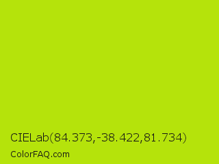 CIELab 84.373,-38.422,81.734 Color is a normal lime color and the nearest color is Inch Worm #b0e313. Hex code #b5e30b and RGB value is rgb(181,227,11). In RGB color space, this color is composed of 71% red, 89% green, 4% blue, In CMYK color space, this color is composed of 20% cyan, 0% magenta, 95% yellow , 11% black , In HSL color space, this color has a hue angle of 73° , 91% saturation and 47% lightness.