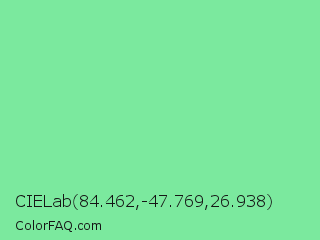 CIELab 84.462,-47.769,26.938 Color is a light green color and the nearest color is Light Green #90ee90. Hex code #7be99e and RGB value is rgb(123,233,158). In RGB color space, this color is composed of 48% red, 91% green, 62% blue, In CMYK color space, this color is composed of 47% cyan, 0% magenta, 32% yellow , 9% black , In HSL color space, this color has a hue angle of 139° , 71% saturation and 70% lightness.