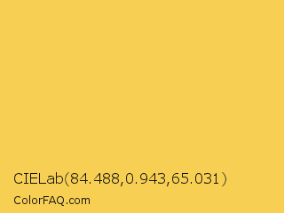 CIELab 84.488,0.943,65.031 Color is a light orange color and the nearest color is Cream Can #f5c85c. Hex code #f7cf52 and RGB value is rgb(247,207,82). In RGB color space, this color is composed of 97% red, 81% green, 32% blue, In CMYK color space, this color is composed of 0% cyan, 16% magenta, 67% yellow , 3% black , In HSL color space, this color has a hue angle of 45° , 91% saturation and 65% lightness.