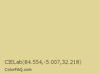 CIELab 84.554,-5.007,32.218 Color is a light yellow color and the nearest color is Zombie #e4d69b. Hex code #e0d496 and RGB value is rgb(224,212,150). In RGB color space, this color is composed of 88% red, 83% green, 59% blue, In CMYK color space, this color is composed of 0% cyan, 5% magenta, 33% yellow , 12% black , In HSL color space, this color has a hue angle of 50° , 54% saturation and 73% lightness.