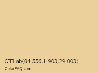 CIELab 84.556,1.903,29.803 Color is a light orange color and the nearest color is Zombie #e4d69b. Hex code #ebd09b and RGB value is rgb(235,208,155). In RGB color space, this color is composed of 92% red, 82% green, 61% blue, In CMYK color space, this color is composed of 0% cyan, 11% magenta, 34% yellow , 8% black , In HSL color space, this color has a hue angle of 40° , 67% saturation and 76% lightness.