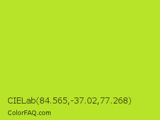 CIELab 84.565,-37.02,77.268 Color is a normal lime color and the nearest color is Inch Worm #b0e313. Hex code #b7e328 and RGB value is rgb(183,227,40). In RGB color space, this color is composed of 72% red, 89% green, 16% blue, In CMYK color space, this color is composed of 19% cyan, 0% magenta, 82% yellow , 11% black , In HSL color space, this color has a hue angle of 74° , 77% saturation and 52% lightness.