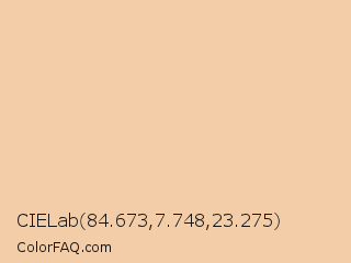CIELab 84.673,7.748,23.275 Color is a light orange color and the nearest color is Pancho #edcdab. Hex code #f2cda8 and RGB value is rgb(242,205,168). In RGB color space, this color is composed of 95% red, 80% green, 66% blue, In CMYK color space, this color is composed of 0% cyan, 15% magenta, 31% yellow , 5% black , In HSL color space, this color has a hue angle of 30° , 74% saturation and 80% lightness.