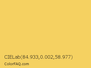 CIELab 84.933,0.002,58.977 Color is a light orange color and the nearest color is Orange Yellow #f8d568. Hex code #f5d161 and RGB value is rgb(245,209,97). In RGB color space, this color is composed of 96% red, 82% green, 38% blue, In CMYK color space, this color is composed of 0% cyan, 15% magenta, 60% yellow , 4% black , In HSL color space, this color has a hue angle of 45° , 88% saturation and 67% lightness.