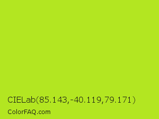 CIELab 85.143,-40.119,79.171 Color is a normal lime color and the nearest color is Inch Worm #b0e313. Hex code #b3e621 and RGB value is rgb(179,230,33). In RGB color space, this color is composed of 70% red, 90% green, 13% blue, In CMYK color space, this color is composed of 22% cyan, 0% magenta, 86% yellow , 10% black , In HSL color space, this color has a hue angle of 76° , 80% saturation and 52% lightness.