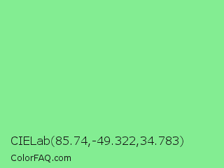 CIELab 85.74,-49.322,34.783 Color is a light green color and the nearest color is Light Green #90ee90. Hex code #83ed92 and RGB value is rgb(131,237,146). In RGB color space, this color is composed of 51% red, 93% green, 57% blue, In CMYK color space, this color is composed of 45% cyan, 0% magenta, 38% yellow , 7% black , In HSL color space, this color has a hue angle of 128° , 75% saturation and 72% lightness.