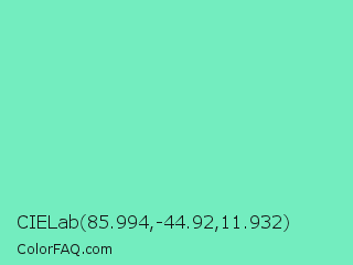 CIELab 85.994,-44.92,11.932 Color is a light green color and the nearest color is Bermuda #7dd8c6. Hex code #73edbf and RGB value is rgb(115,237,191). In RGB color space, this color is composed of 45% red, 93% green, 75% blue, In CMYK color space, this color is composed of 51% cyan, 0% magenta, 19% yellow , 7% black , In HSL color space, this color has a hue angle of 157° , 77% saturation and 69% lightness.
