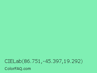 CIELab 86.751,-45.397,19.292 Color is a light green color and the nearest color is Algae Green #93dfb8. Hex code #7fefb3 and RGB value is rgb(127,239,179). In RGB color space, this color is composed of 50% red, 94% green, 70% blue, In CMYK color space, this color is composed of 47% cyan, 0% magenta, 25% yellow , 6% black , In HSL color space, this color has a hue angle of 148° , 78% saturation and 72% lightness.