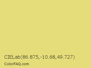 CIELab 86.875,-10.68,49.727 Color is a light yellow color and the nearest color is Straw #e4d96f. Hex code #e5dd79 and RGB value is rgb(229,221,121). In RGB color space, this color is composed of 90% red, 87% green, 47% blue, In CMYK color space, this color is composed of 0% cyan, 3% magenta, 47% yellow , 10% black , In HSL color space, this color has a hue angle of 56° , 68% saturation and 69% lightness.