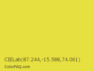 CIELab 87.244,-15.588,74.061 Color is a normal yellow color and the nearest color is Sandstorm #ecd540. Hex code #e6e040 and RGB value is rgb(230,224,64). In RGB color space, this color is composed of 90% red, 88% green, 25% blue, In CMYK color space, this color is composed of 0% cyan, 3% magenta, 72% yellow , 10% black , In HSL color space, this color has a hue angle of 58° , 77% saturation and 58% lightness.