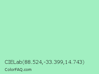 CIELab 88.524,-33.399,14.743 Color is a light green color and the nearest color is Sea Foam Green #9fe2bf. Hex code #a1efc1 and RGB value is rgb(161,239,193). In RGB color space, this color is composed of 63% red, 94% green, 76% blue, In CMYK color space, this color is composed of 33% cyan, 0% magenta, 19% yellow , 6% black , In HSL color space, this color has a hue angle of 145° , 71% saturation and 78% lightness.