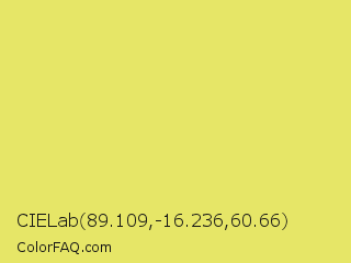 CIELab 89.109,-16.236,60.66 Color is a light yellow color and the nearest color is Booger Buster #dde26a. Hex code #e6e667 and RGB value is rgb(230,230,103). In RGB color space, this color is composed of 90% red, 90% green, 40% blue, In CMYK color space, this color is composed of 0% cyan, 0% magenta, 55% yellow , 10% black , In HSL color space, this color has a hue angle of 60° , 72% saturation and 65% lightness.