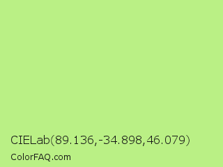 CIELab 89.136,-34.898,46.079 Color is a light green color and the nearest color is Sulu #c1f07c. Hex code #baf085 and RGB value is rgb(186,240,133). In RGB color space, this color is composed of 73% red, 94% green, 52% blue, In CMYK color space, this color is composed of 23% cyan, 0% magenta, 45% yellow , 6% black , In HSL color space, this color has a hue angle of 90° , 78% saturation and 73% lightness.
