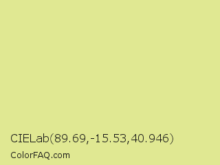CIELab 89.69,-15.53,40.946 Color is a light yellow color and the nearest color is Wild Rice #ece090. Hex code #e0e892 and RGB value is rgb(224,232,146). In RGB color space, this color is composed of 88% red, 91% green, 57% blue, In CMYK color space, this color is composed of 3% cyan, 0% magenta, 37% yellow , 9% black , In HSL color space, this color has a hue angle of 66° , 65% saturation and 74% lightness.