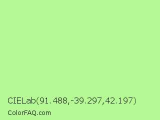CIELab 91.488,-39.297,42.197 Color is a light green color and the nearest color is Reef #c9ffa2. Hex code #b4f993 and RGB value is rgb(180,249,147). In RGB color space, this color is composed of 71% red, 98% green, 58% blue, In CMYK color space, this color is composed of 28% cyan, 0% magenta, 41% yellow , 2% black , In HSL color space, this color has a hue angle of 101° , 89% saturation and 78% lightness.
