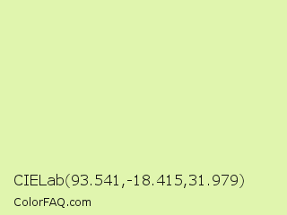 CIELab 93.541,-18.415,31.979 Color is a very light lime color and the nearest color is Caper #dcedb4. Hex code #e0f5ae and RGB value is rgb(224,245,174). In RGB color space, this color is composed of 88% red, 96% green, 68% blue, In CMYK color space, this color is composed of 9% cyan, 0% magenta, 29% yellow , 4% black , In HSL color space, this color has a hue angle of 78° , 78% saturation and 82% lightness.