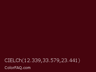 CIELCh 12.339,33.579,23.441 Color is a very dark red color and the nearest color is Bulgarian Rose #480607. Hex code #47040e and RGB value is rgb(71,4,14). In RGB color space, this color is composed of 28% red, 2% green, 5% blue, In CMYK color space, this color is composed of 0% cyan, 94% magenta, 80% yellow , 72% black , In HSL color space, this color has a hue angle of 351° , 89% saturation and 15% lightness.