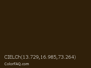 CIELCh 13.729,16.985,73.264 Color is a very dark orange color and the nearest color is Clinker #371d09. Hex code #30200a and RGB value is rgb(48,32,10). In RGB color space, this color is composed of 19% red, 13% green, 4% blue, In CMYK color space, this color is composed of 0% cyan, 33% magenta, 79% yellow , 81% black , In HSL color space, this color has a hue angle of 35° , 66% saturation and 11% lightness.