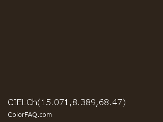 CIELCh 15.071,8.389,68.47 Color is a very dark orange color and the nearest color is Zeus #292319. Hex code #2e241b and RGB value is rgb(46,36,27). In RGB color space, this color is composed of 18% red, 14% green, 11% blue, In CMYK color space, this color is composed of 0% cyan, 22% magenta, 41% yellow , 82% black , In HSL color space, this color has a hue angle of 28° , 26% saturation and 14% lightness.