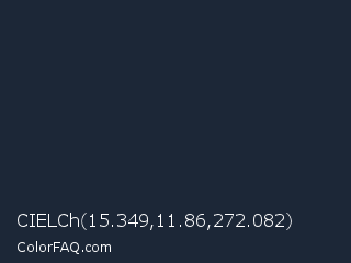 CIELCh 15.349,11.86,272.082 Color is a very dark blue color and the nearest color is Yankees Blue #1c2841. Hex code #1c2737 and RGB value is rgb(28,39,55). In RGB color space, this color is composed of 11% red, 15% green, 22% blue, In CMYK color space, this color is composed of 49% cyan, 29% magenta, 0% yellow , 78% black , In HSL color space, this color has a hue angle of 216° , 33% saturation and 16% lightness.