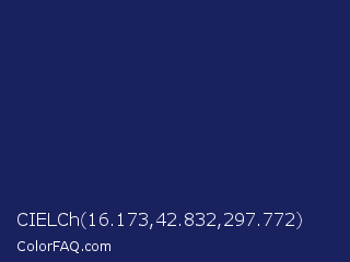 CIELCh 16.173,42.832,297.772 Color is a dark blue color and the nearest color is Lucky Point #1a1a68. Hex code #1a215f and RGB value is rgb(26,33,95). In RGB color space, this color is composed of 10% red, 13% green, 37% blue, In CMYK color space, this color is composed of 73% cyan, 65% magenta, 0% yellow , 63% black , In HSL color space, this color has a hue angle of 234° , 57% saturation and 24% lightness.