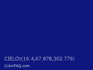 CIELCh 16.4,67.878,302.779 Color is a dark blue color and the nearest color is Dark Imperial Blue #00147e. Hex code #0d177d and RGB value is rgb(13,23,125). In RGB color space, this color is composed of 5% red, 9% green, 49% blue, In CMYK color space, this color is composed of 90% cyan, 82% magenta, 0% yellow , 51% black , In HSL color space, this color has a hue angle of 235° , 81% saturation and 27% lightness.