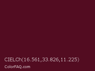 CIELCh 16.561,33.826,11.225 Color is a very dark rose color and the nearest color is Maroon Oak #520c17. Hex code #530c21 and RGB value is rgb(83,12,33). In RGB color space, this color is composed of 33% red, 5% green, 13% blue, In CMYK color space, this color is composed of 0% cyan, 86% magenta, 60% yellow , 67% black , In HSL color space, this color has a hue angle of 342° , 75% saturation and 19% lightness.