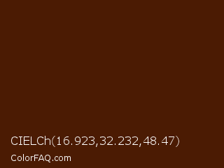 CIELCh 16.923,32.232,48.47 Color is a very dark orange color and the nearest color is Indian Tan #4d1e01. Hex code #4b1b03 and RGB value is rgb(75,27,3). In RGB color space, this color is composed of 29% red, 11% green, 1% blue, In CMYK color space, this color is composed of 0% cyan, 64% magenta, 96% yellow , 71% black , In HSL color space, this color has a hue angle of 20° , 92% saturation and 15% lightness.