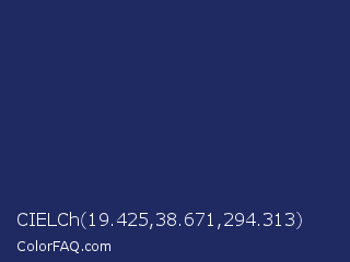 CIELCh 19.425,38.671,294.313 Color is a dark blue color and the nearest color is Biscay #1b3162. Hex code #1f2a63 and RGB value is rgb(31,42,99). In RGB color space, this color is composed of 12% red, 16% green, 39% blue, In CMYK color space, this color is composed of 69% cyan, 58% magenta, 0% yellow , 61% black , In HSL color space, this color has a hue angle of 230° , 52% saturation and 25% lightness.