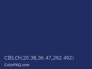 CIELCh 20.38,36.47,292.492 Color is a dark blue color and the nearest color is Biscay #1b3162. Hex code #202d63 and RGB value is rgb(32,45,99). In RGB color space, this color is composed of 13% red, 18% green, 39% blue, In CMYK color space, this color is composed of 68% cyan, 55% magenta, 0% yellow , 61% black , In HSL color space, this color has a hue angle of 228° , 51% saturation and 26% lightness.